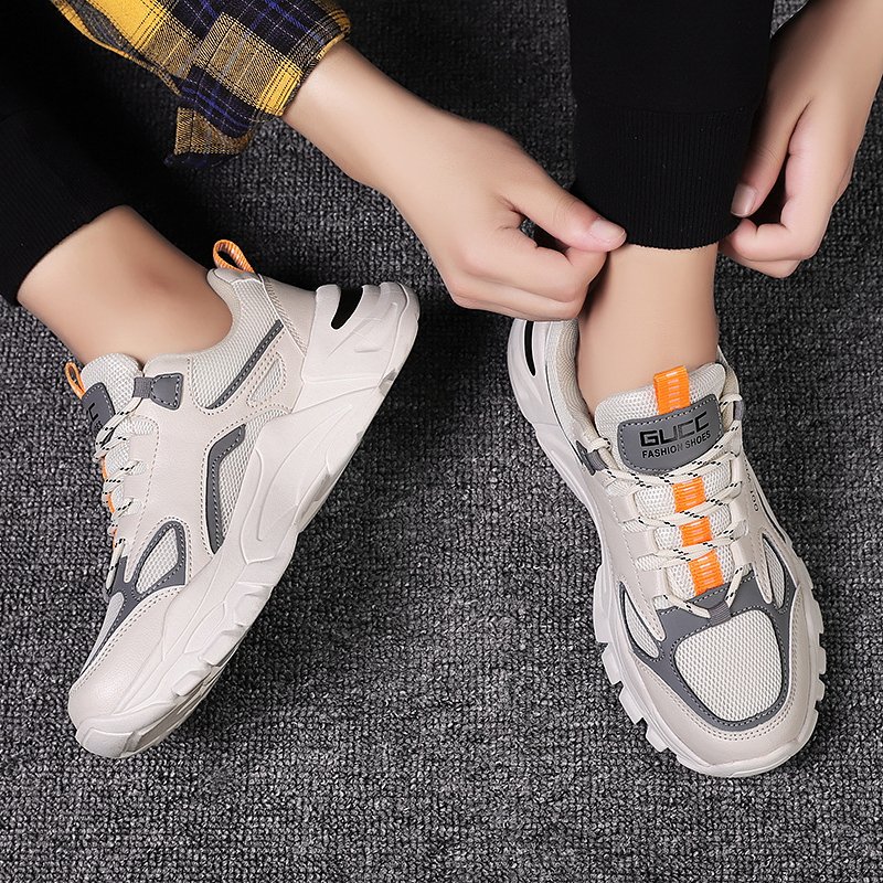 These stylish chunky sneakers feature a sleek off-white base accented with vibrant orange and gray details, delivering a bold and energetic look. Crafted with high-quality breathable mesh and synthetic leather, the upper ensures durability and comfort for all-day wear. The thick anti-slip rubber sole provides excellent grip and shock absorption, keeping your steps steady and supported. Perfect for casual outings, workouts, or streetwear fashion, these sneakers are a must-have addition to your wardrobe.