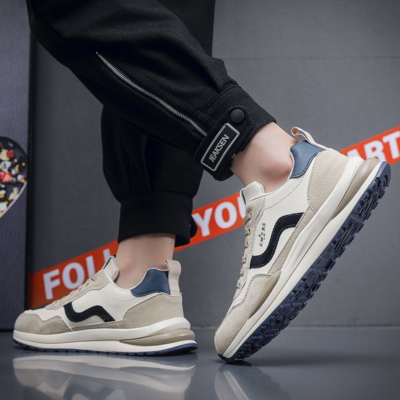 These stylish casual sneakers feature an off-white base with black accents, combining simplicity with a modern design aesthetic. The upper is crafted from premium suede and synthetic materials, offering a soft, breathable, and comfortable feel for extended wear. Equipped with an anti-slip, wear-resistant rubber sole and cushioning for added support, these sneakers ensure stable and comfortable steps. Perfect for daily commutes, casual outings, or light activities, they showcase your effortless fashion sense.