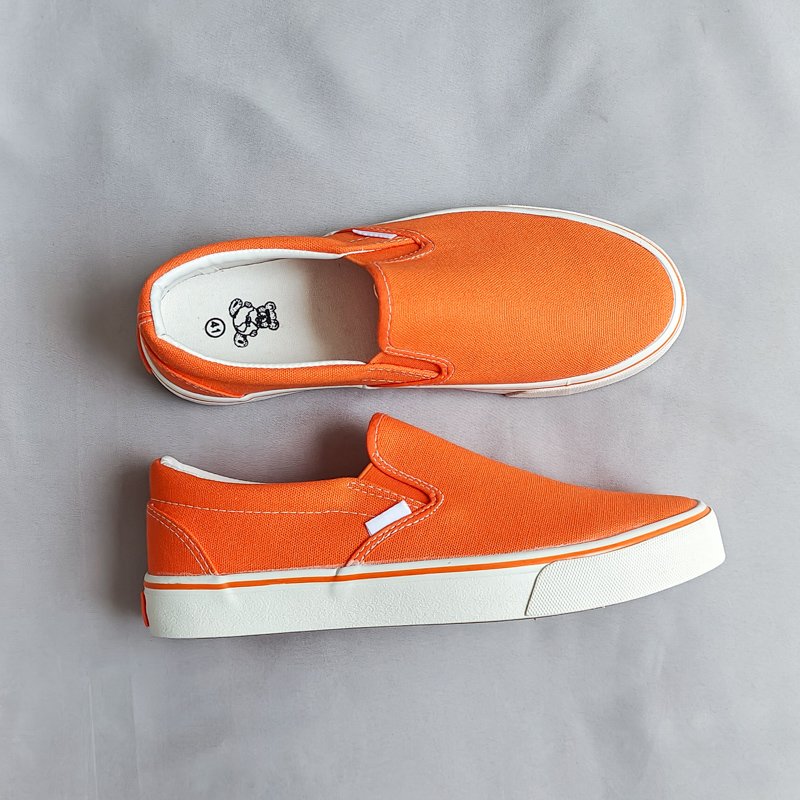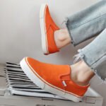 These vibrant orange slip-on canvas shoes combine standout style, comfort, and ease of wear. Add a pop of energy to your wardrobe and make every step bold and fashionable!