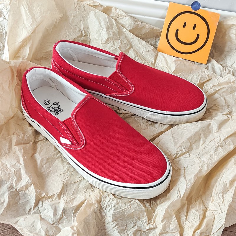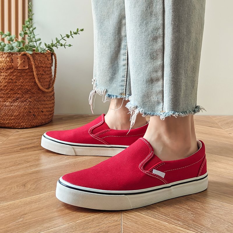 These vibrant red slip-on canvas shoes combine standout style, comfort, and ease of wear. Add a pop of energy to your wardrobe and make every step bold and fashionable!