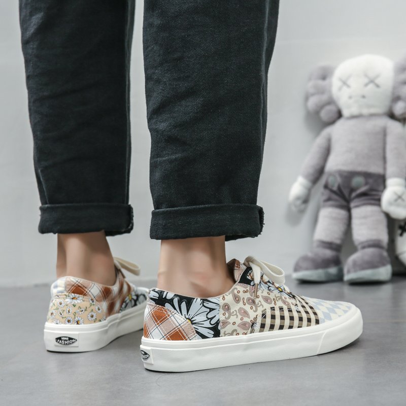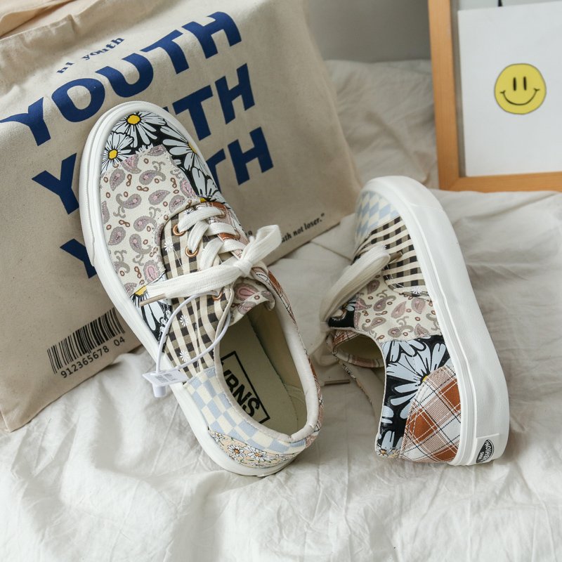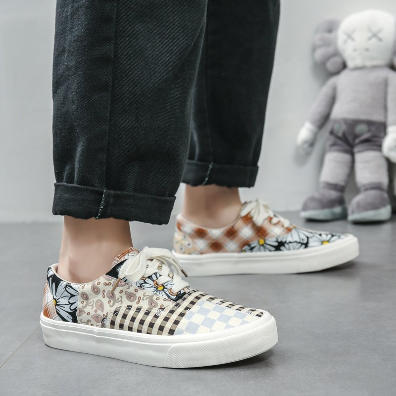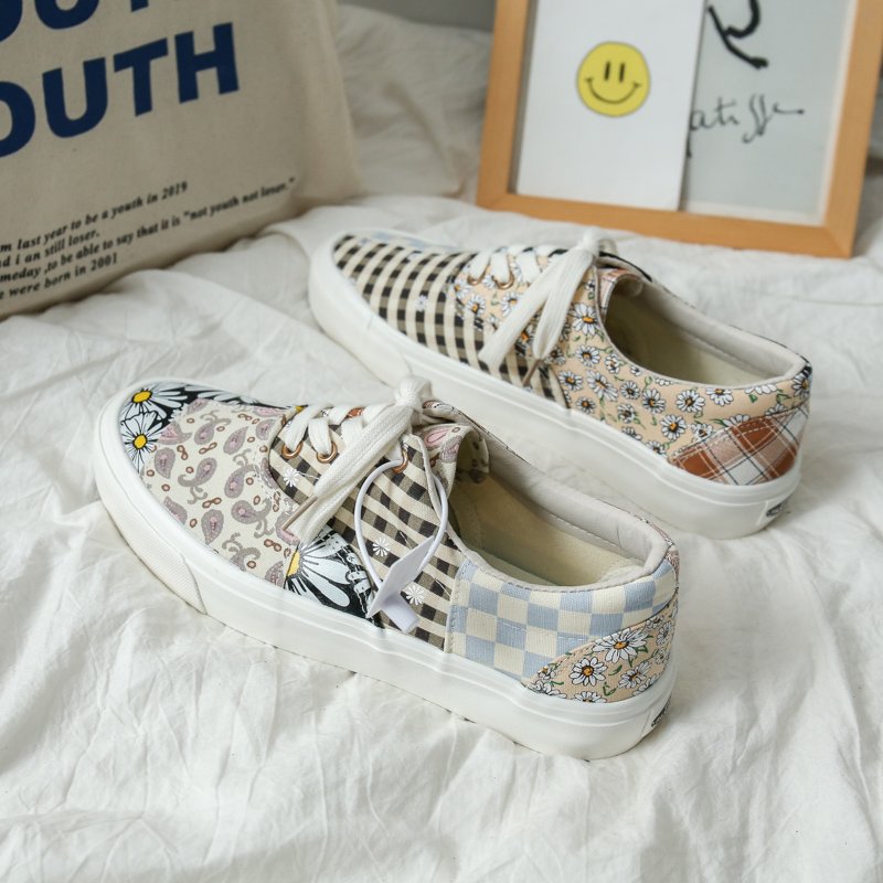 These patchwork-style canvas shoes combine multiple fashion elements, showcasing a unique personality and artistic flair. The upper features a creative blend of vintage floral, checkered, and polka dot patterns in soft, harmonious colors, delivering a one-of-a-kind fashion statement. Made from premium canvas material, the shoes are breathable, durable, and designed for lasting comfort. The soft inner lining ensures a cozy feel, while the lightweight, anti-slip rubber sole offers excellent grip and stability, making them perfect for everyday outings and casual occasions. Whether paired with jeans, skirts, or casual wear, these canvas shoes effortlessly add a touch of style and individuality to any outfit.