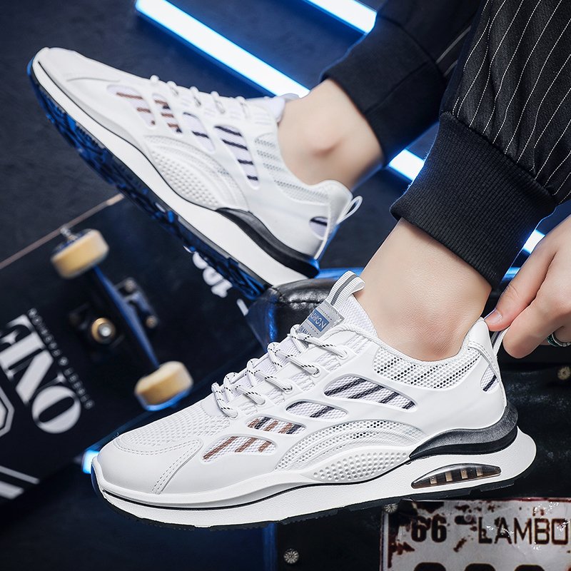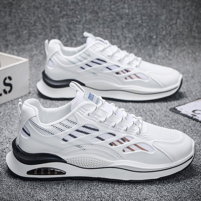 These sneakers combine stylish design with exceptional functionality, providing you with a comfortable wearing experience. Made with breathable mesh material, they keep your feet dry and comfortable. The thickened cushioning air sole offers excellent shock absorption, making them perfect for running, workouts, or daily wear. The outsole features anti-slip and wear-resistant rubber, enhancing grip and stability for safe walking. The clean, modern color scheme paired with a streamlined design makes these shoes versatile for any outfit, blending sport and casual style seamlessly.