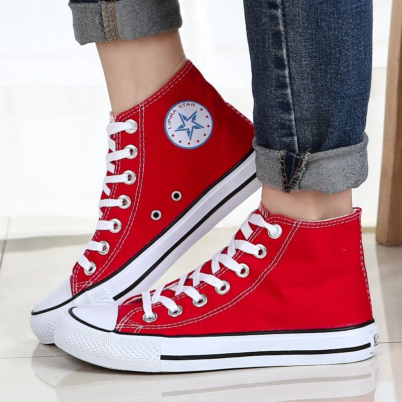 “These classic red high-top canvas sneakers are the ultimate blend of timeless style and everyday comfort. Featuring a durable canvas upper, breathable design, and a sturdy rubber sole, they are perfect for casual outings or completing your streetwear look. With their unisex appeal and versatile design, these sneakers are a wardrobe essential, offering both style and functionality for any season.”