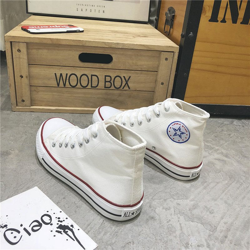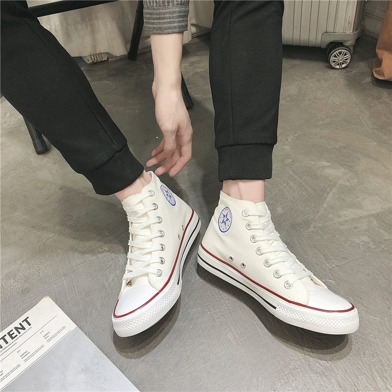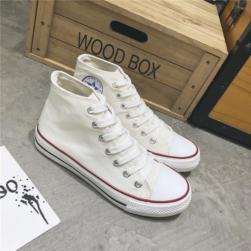 These classic white high-top canvas shoes feature a simple and retro design, making them a versatile and comfortable choice for daily wear. The upper is made of high-quality canvas material, which is breathable and durable for all-day comfort. The outsole is crafted from non-slip rubber, providing excellent grip and safety. The timeless white body with red and black accents adds a touch of style, making these shoes perfect for casual outings or everyday campus life. Designed to suit both men and women, they are a must-have addition to your wardrobe, ensuring confidence and comfort wherever you go.