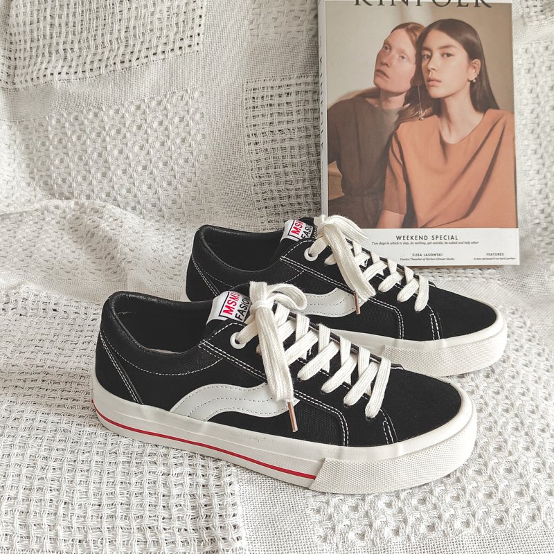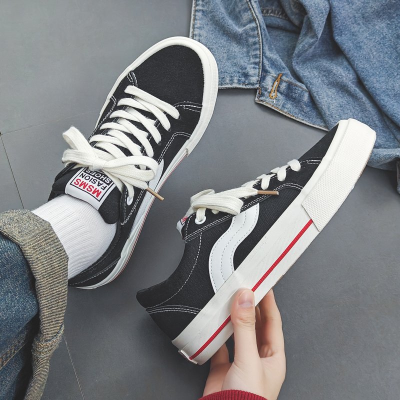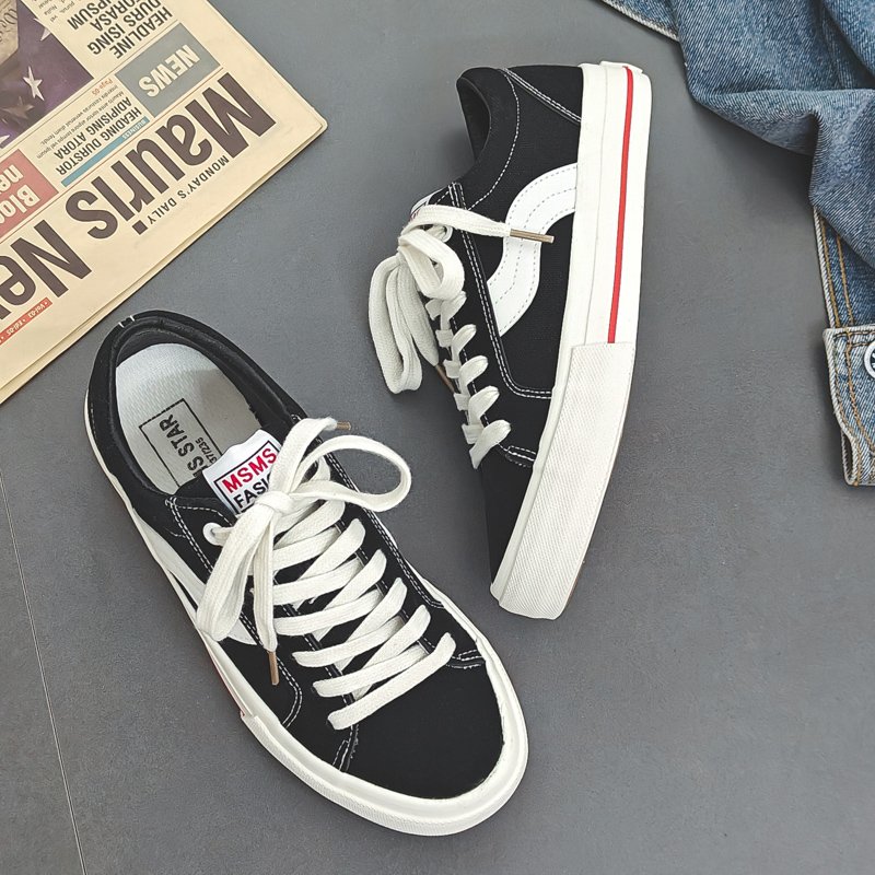 Fashion black and white color scheme walking style vulcanized shoes low top canvas trend shoes-vt59