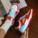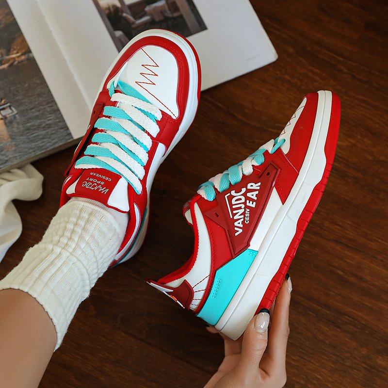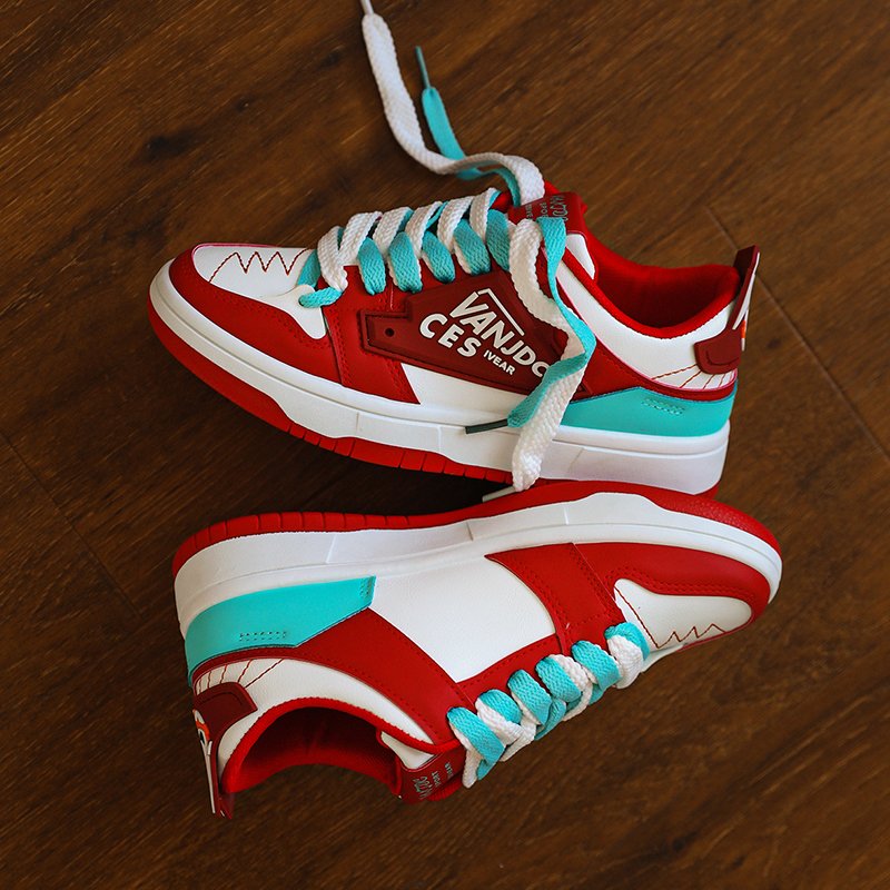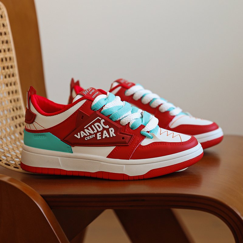 This trendy and stylish sneaker features a unique color-blocking design, with red and white as the main tones accented by striking blue details, creating a distinctive and eye-catching look. The upper is made of high-quality synthetic materials, offering both breathability and durability to ensure all-day comfort. The thickened sole provides excellent cushioning and enhanced support, making it perfect for everyday wear or light exercise. The side of the shoe features personalized logo designs and textured details, adding a touch of street fashion. Whether paired with casual or athletic wear, these sneakers will make you stand out in the crowd!