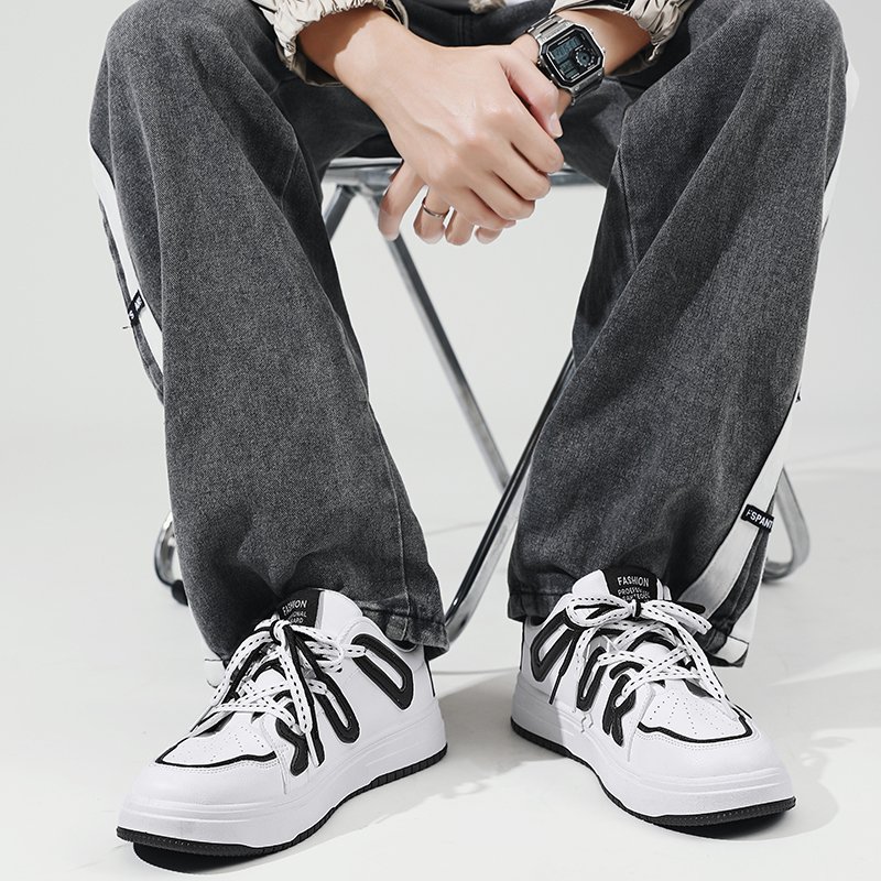 These stylish and trendy casual sneakers feature a classic black and white color scheme with unique 3D letter embellishments, showcasing personality and street fashion. Made from high-quality synthetic leather, the upper is breathable and lightweight, ensuring all-day comfort. The thickened anti-slip rubber outsole offers excellent durability and grip, making it perfect for both daily wear and active outings. Combining fashion and functionality, these sneakers are a must-have versatile piece for urban trendsetters. Step into them and effortlessly own every stride with your unique style!