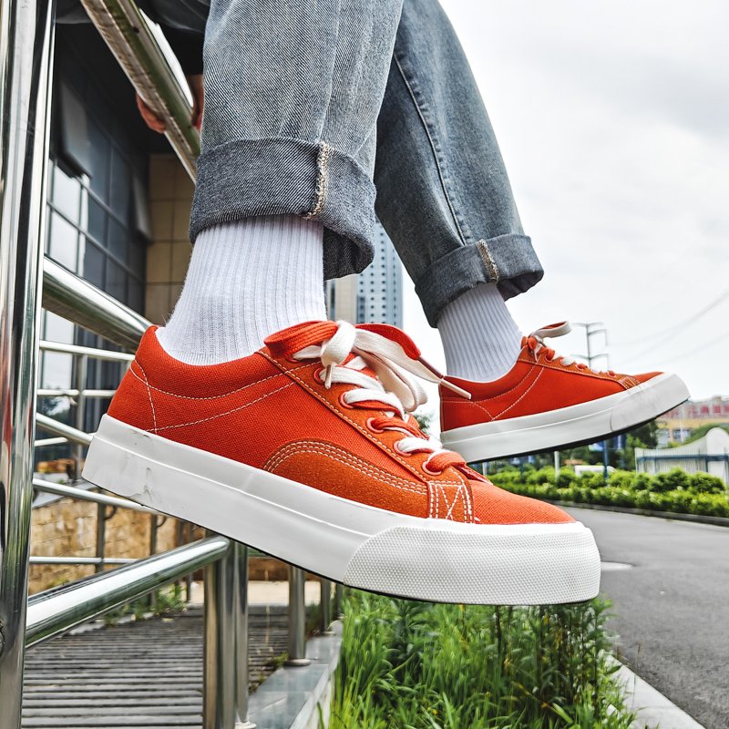 Low-top Canvas Sneakers Men Fashion Orange Skateboard Shoes Breathable Casual Flat Vulcanized Sneakers Men Canvas Shoes-dck818
