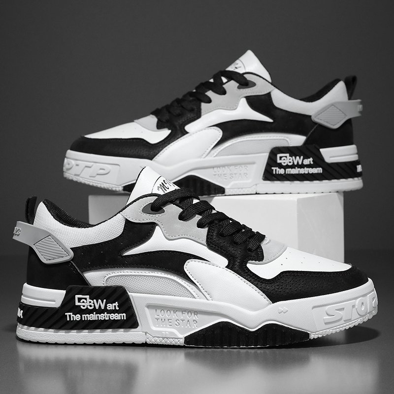 This stylish casual sports shoe features a unique black and white color-block design, combining fashion with functionality. Made from premium materials, the upper is wear-resistant and breathable, while the thickened sole provides stable support for all-day comfort. Modern details, such as the 3D decorations and eye-catching letter patterns, enhance the contemporary street style, ensuring you stand out from the crowd. Whether for daily casual wear or trendy urban outfits, this sneaker is the perfect choice, effortlessly meeting various occasions and showcasing confident, stylish vibes.