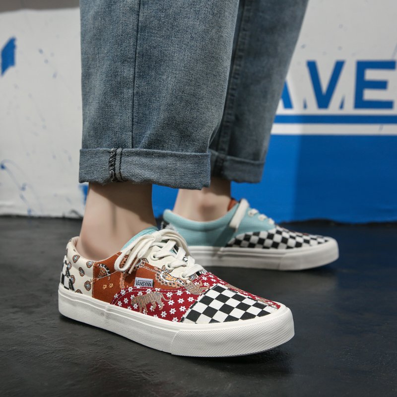 Be the first to review “New Lattice Color Matching Design Custom Vulcanized Lace up Flat Casual Sneakers Canvas Men Women Shoes-vt18” Cancel reply