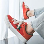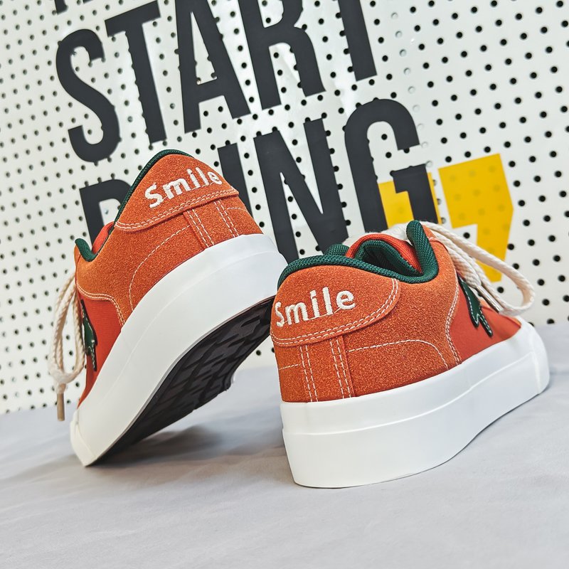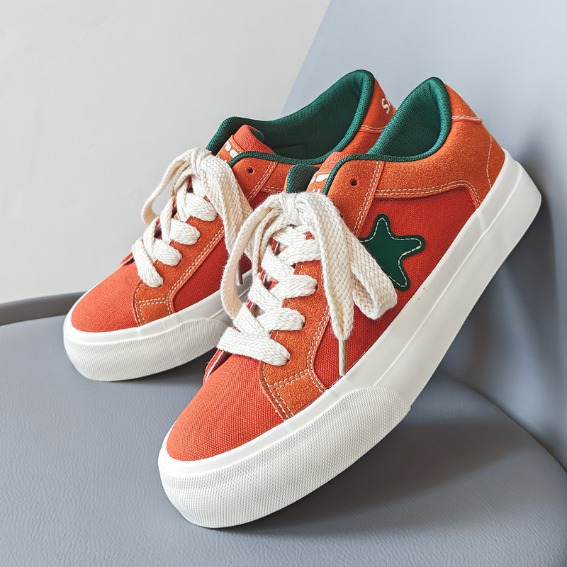 These low-top canvas shoes feature a bold orange upper paired with an eye-catching green star accent, showcasing a unique personality and youthful style. The clean silhouette combined with premium canvas material ensures a breathable and comfortable fit, perfect for daily outings or casual wear.