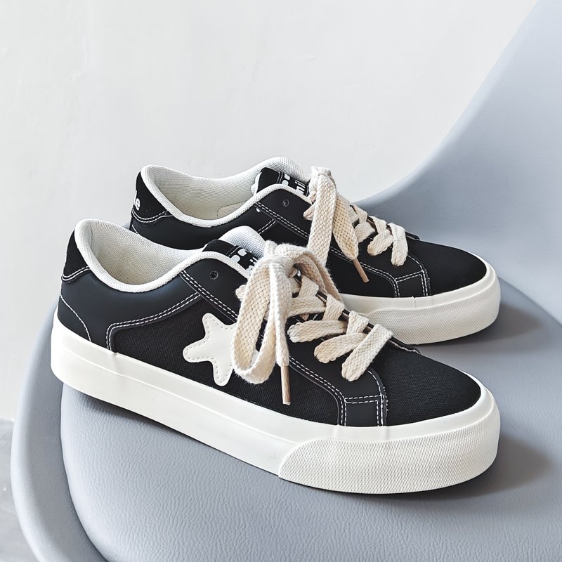 These black and white low-top canvas shoes feature a simple yet stylish design. The black upper, accented with a white star, perfectly blends timeless classics with trendy details. Made with high-quality canvas material, they are lightweight and breathable, paired with a soft insole and anti-slip rubber sole for comfort and safety. Perfect for daily wear, campus life, and street fashion.