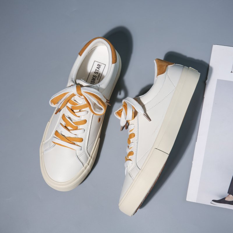 These minimalist and stylish white casual shoes feature thoughtful details with vibrant yellow laces and heel accents, instantly enhancing your overall look with a touch of modern flair. The upper is crafted from high-quality synthetic leather, offering a smooth texture that is durable and easy to clean. The soft, comfortable lining combined with a lightweight sole provides all-day comfort, while the anti-slip, wear-resistant rubber outsole ensures excellent grip and stability for confident steps wherever you go. The clean white and lively yellow color combination makes these shoes a versatile addition to any wardrobe, pairing effortlessly with casual, work, or streetwear styles.