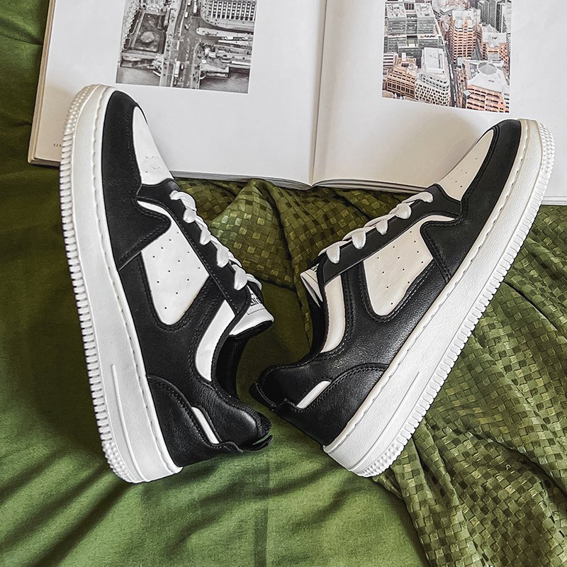 Thick Bottom Sneakers Walking Shoes Work Shoes Black and White Sneakers Comfortable Classic Work Shoes-k066